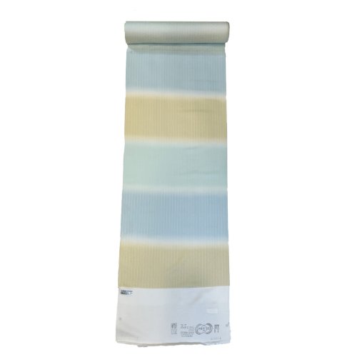 | 商品の特徴 | 商品の特徴: 爽やかな配色の横段ぼかし、よく見ると細いストライプが、シャープでスッキリした仕上がりに染上がっています。生地は高級丹後ちりめん、風合いが良くサラサラ感が。袷にされても勿論良いですが、お単衣にも最適かと思います。 お仕立て時には横段を揃えるか、ずらすか、お好みでご指定ください。 地色がきれなので、ガード加工等を一緒にオススメさせていただきます。 |