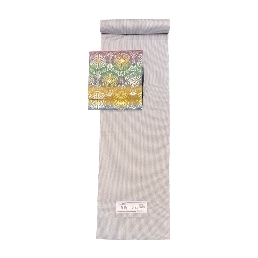商品の特徴 | 東レシルックの小紋「角通し」。裄長対応でやわらかなグレーの地色に、規則正しく配された角通し模様が端正な趣を添える一枚です。遠目には無地感覚で、近くで見ると洒落た文様が浮かび上がるため、帯合わせ次第でフォーマルからカジュアルまで幅広く楽しめます。シルック素材は絹に近い光沢としなやかさを持ちながら、自宅で洗える手軽さが魅力。しわになりにくく、雨の日や長時間の外出でも安心してお召しいただけます。やさしいグレーの色合いは装いに明るさを添え、年齢を問わず取り入れやすいのも魅力です。お稽古や観劇などの日常シーンはもちろん、季節の集まりや気軽なお出かけにも重宝する、実用性とお洒落を兼ね備えた小紋です。 |