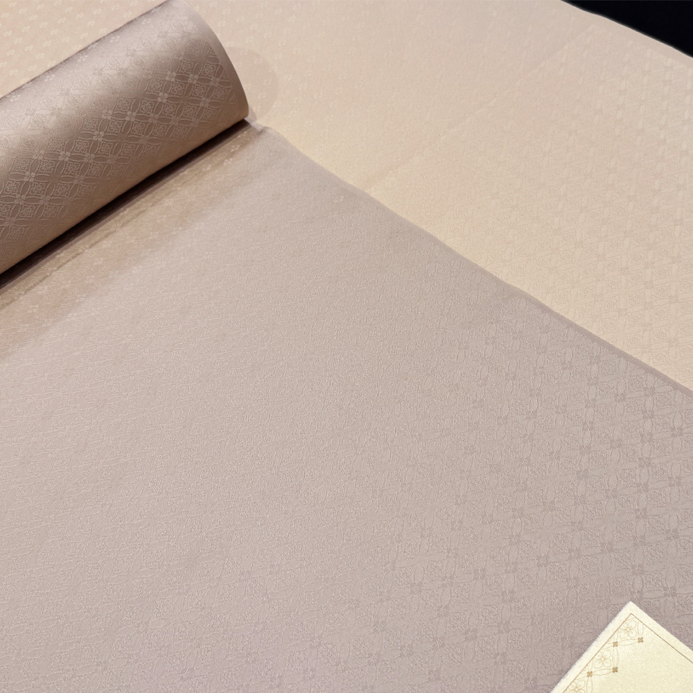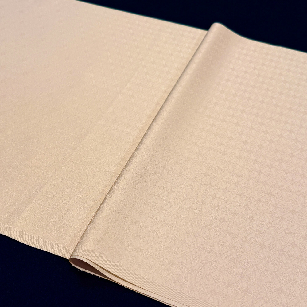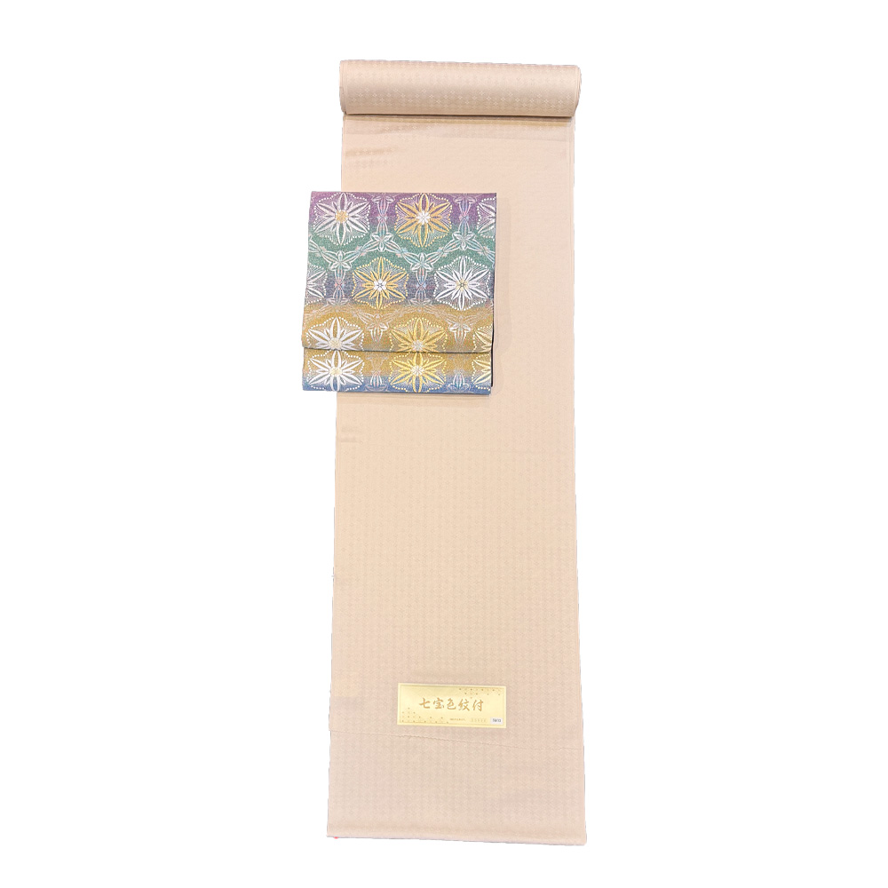 商品の特徴 | 東レの高品質ポリエステル素材「シルック」を使用した、七宝文様地紋入りの色無地きものです。画像右の淡黄色は、肌なじみが良く上品な印象を与え、帯合わせ次第で略礼装からカジュアルな装いまで幅広く対応可能。繊細な地紋が光の加減で美しく浮かび上がり、無地でありながら深みのある表情を見せてくれます。シワになりにくく、ご自宅でのお手入れも簡単。日常使いはもちろん、きもの初心者の方にも安心しておすすめできる一枚です。 |