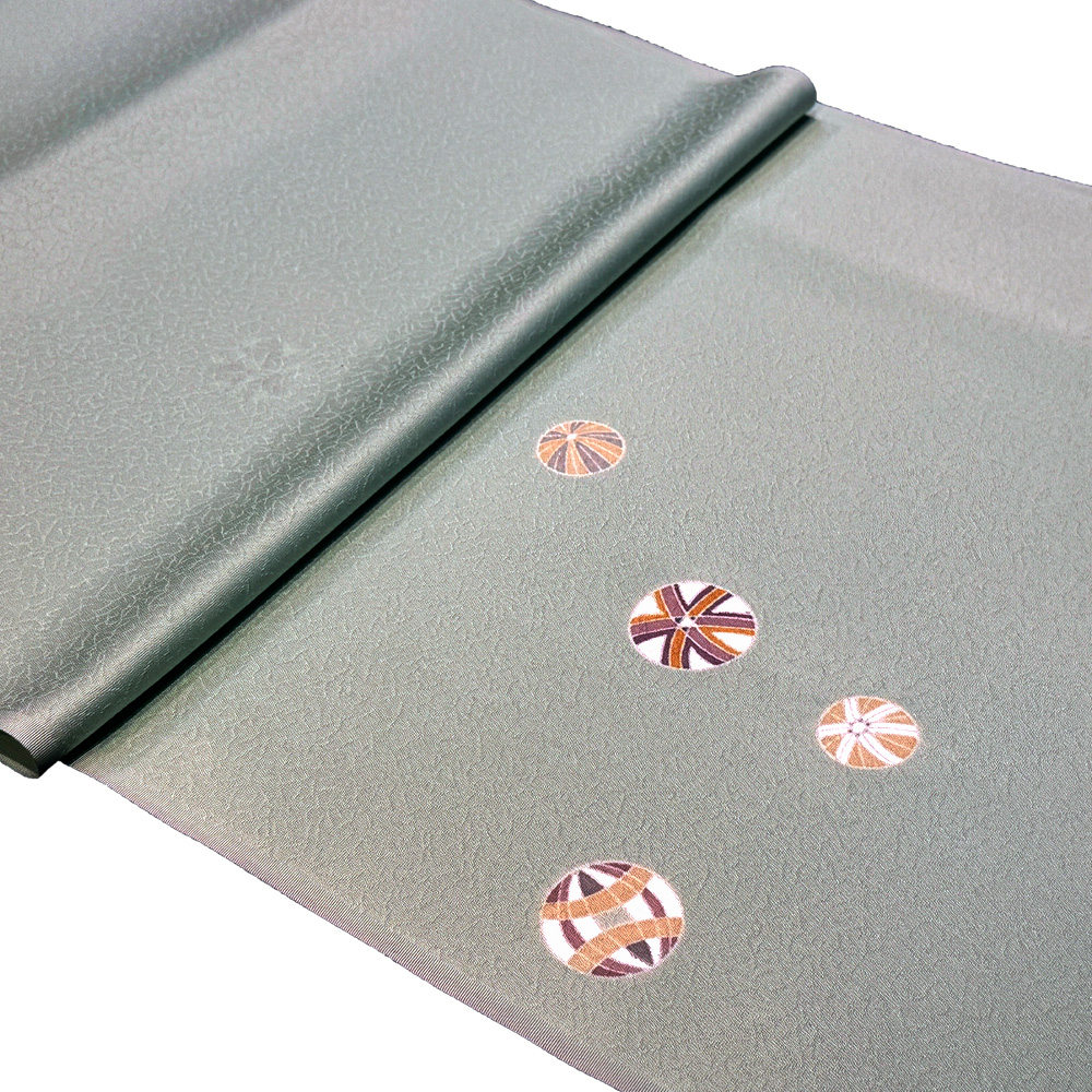 | 商品の特徴 | 洗えるきもの 東レシルック「淡青磁色・毬文様」は、やわらかな青みを帯びたグリーン地に、愛らしい手まり模様を散らした上品な一枚です。可憐な色合いの丸文がリズミカルに配され、女性らしいやさしさと華やぎを演出します。上質なシルック素材は、絹のような光沢としなやかさを持ちながら、ご家庭で気軽に洗えるのが魅力。シワになりにくく、雨の日やご旅行にも安心してお召しいただけます。お稽古や観劇、お食事会など、気負わず楽しめるお出かけ着として最適。清涼感と上品さを兼ね備えた、現代の暮らしに寄り添う洗えるきものです。 |