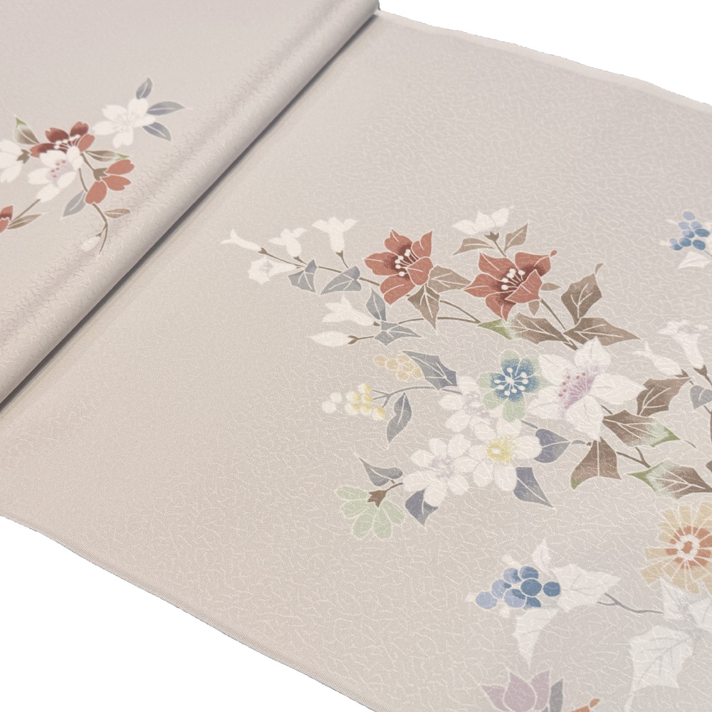 | 商品の特徴 | 洗えるきもの 東レシルック「附下・秋草文様」は、やわらかなグレーベージュ地に、上品な秋草をあしらった気品漂う一枚です。菊や桔梗、撫子などの花々が、淡く優しい彩りで描かれ、季節感をさりげなく演出します。附下ならではの格調のある柄付けで、お茶席やパーティー、セミフォーマルな場にもふさわしい装いに。東レシルック素材は、絹のような光沢としなやかさを持ちながら、ご自宅で洗える手軽さが魅力です。シワになりにくく、雨の日も安心。上質感と実用性を兼ね備えた、現代女性のための美しい洗える附下です。 |